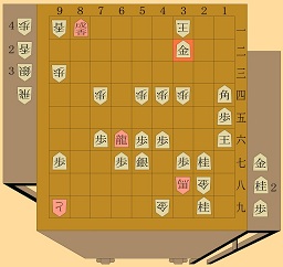 飛先を突き合う相掛かりでの対戦となり、敵陣の隙をつき龍をつくる[森田]。