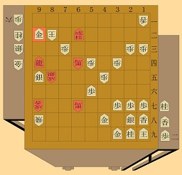 [竜王]が飛車得となるも、[森田]も桂馬と角を絡めた連携で反撃する。