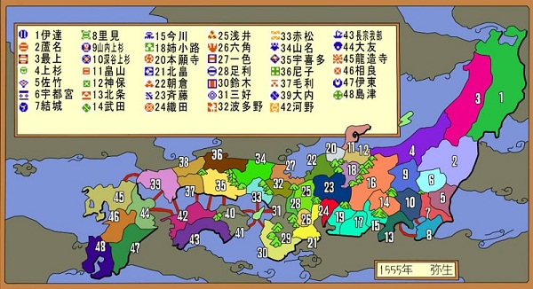 | 25 | 尾張 | 織田信長 | 26 | 50 | 薩摩大隅 | 島津貴久 | 46 |